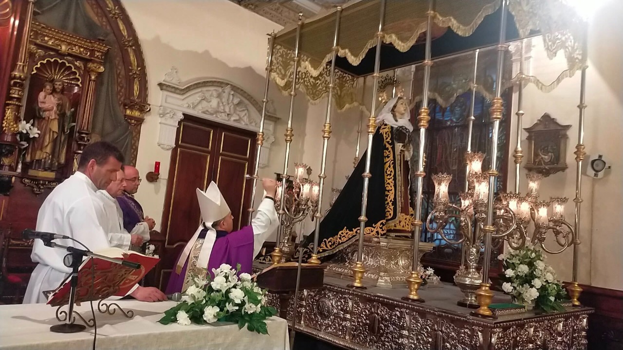 El martes en la eucaristía en honor a Nuestra Señora de la Serenidad el Excmo. Señor Arzobispo monseñor Francisco Jose Prieto Fernandez bendijo el nuevo palio, realizado por el maestro Francisco Perales.